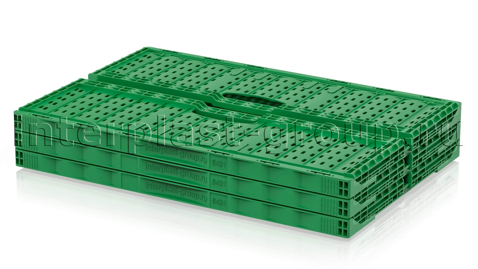 Складные ящики разработаны и спроектированы для хранения и перемещения плодо-овощных культур как внутри производства, так и между торговыми точками и складами. Благодаря функции складывания значительно экономят место при использовании в качестве возвратной тары. Перфорированные стенки обеспечивают сохранение свежести и сочность продуктов перфорации абсолютно на всех стадиях логистики. Штабелируются на паллетах 1200х1000 и 1200х800.