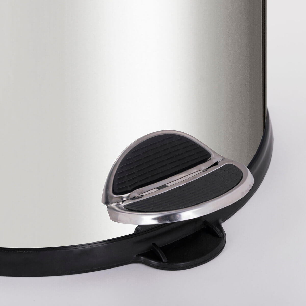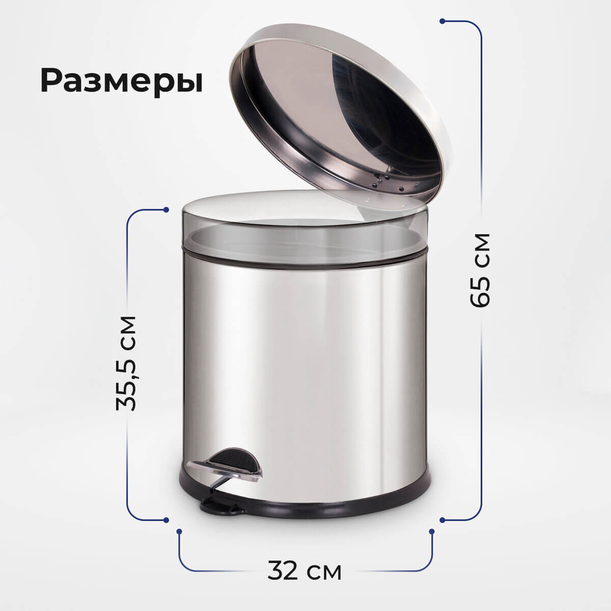 Внутреннее съемное пластиковое ведро оснащено удобной рукояткой для легкости извлечения мусора. Ведро изготовлено из нержавеющей стали с антикоррозийным покрытием, что обеспечивает долгий срок службы. Антискользящее основание обеспечивает устойчивость.